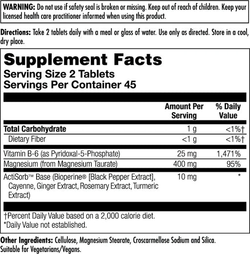 Kal Magnesium Taurate + 400mg, 180 tab Magnesium for more than 300 enzymatic processes, but not all forms of this essential mineral are created ...