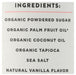 Miss Jones Organic Vanilla Frosting is certified USDA organic and vegan frosting. Each 11.29 oz container has 9 servings of 2 tbs each. Our vanilla frosting has no hydrogenated oils and is trans fat free. Our frosting is made from all natural ingredients. We are proudly rainforest alliance certified.