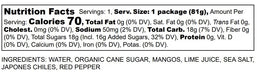 Light orange in color with visible chile flakes throughout, mango chile lime is inspired by the classic fruit cups sold by latin street vendors. Sweet and tropical, the heat from the japones chiles and cayenne powder sneaks up on you while the lime juice provides the perfect balance.