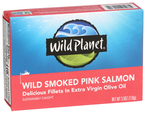 Wild Planet Smoked Pink Salmon, 3.9 oz Wild Planet Smoked Pink Salmon is sustainably caught in Alaska. Each fillet is hand-cut and wood-fire smo...