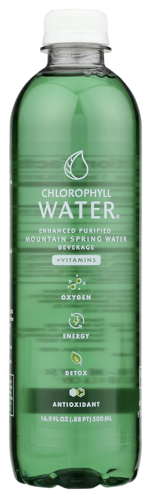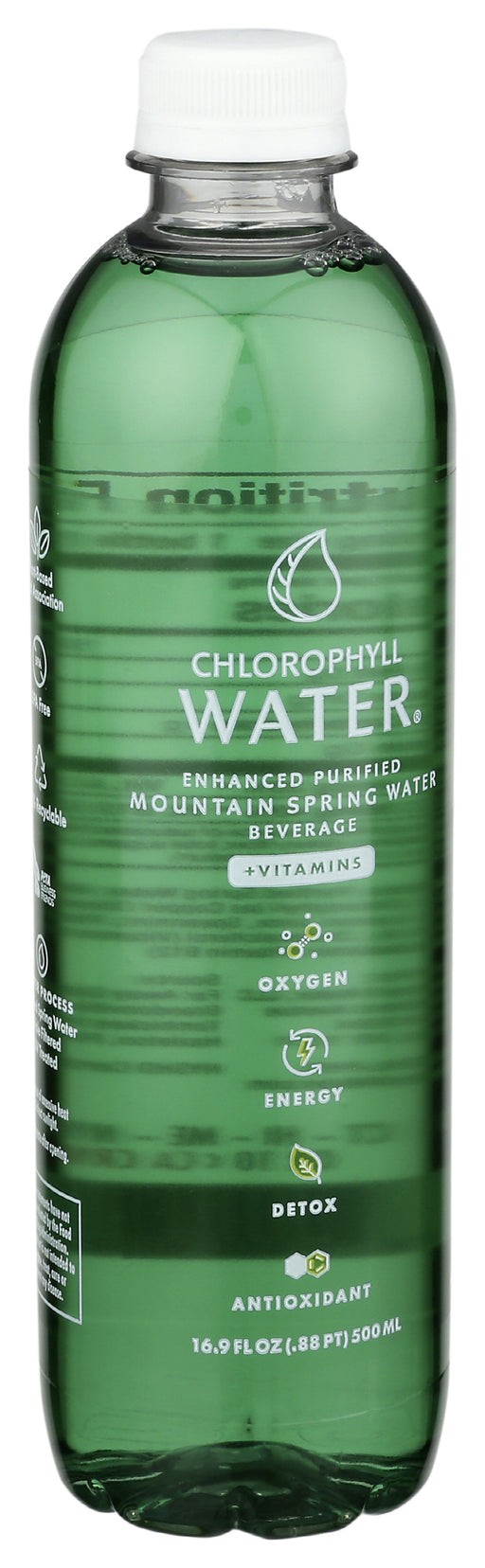 Chlorophyll Water Bottled Water 16.9 Floz Cleanflake label. Enhanced purified mountain spring water beverage + vitamins oxygen energy detox a...