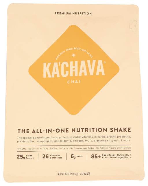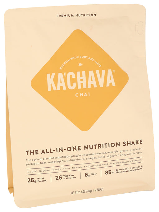 Ka'Chava Nutrition Shake, Chai, 15.3 oz Ka'Chava Nutrition Shake, Chai is a plant-based shakes taste like twigs and lawn clippings. It’s flavorf...