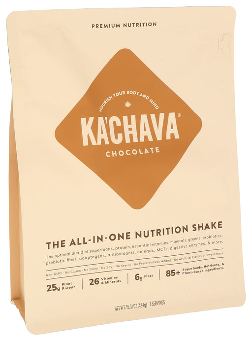 Ka'Chava Nutrition Shake, Chocolate, 15.3 oz Ka'Chava Nutrition Shake, Chocolate is a most plant-based shakes taste like twigs and lawn clipping...