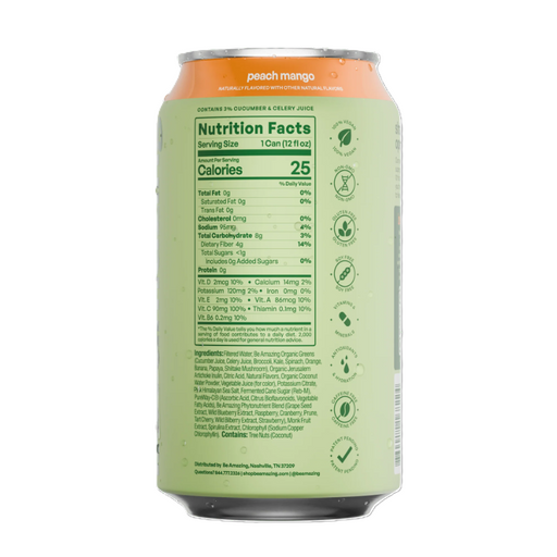 Be Amazing Prebiotic Greens Drink, Peach Mango, 12 fl oz Be Amazing Prebiotic Greens Drink, Peach Mango are a good source of fiber according to ...