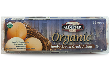 Alderfer Brown Eggs Jumbo, Org, 1 doz Alderfer Brown Eggs Jumbo Organic eggs are from 100% vegetarian fed chickens and fed organic feed containi...