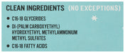 • Clean ingredients ( no exceptions ) C16-18 glycerides, di-( palm carboxyethyl ) hydroxyethyl methylammonium methyl sulfates, C16-18 fatty acids.