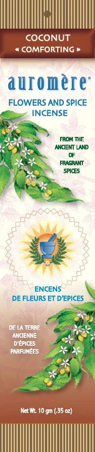 Auromere Coconut Incence Sticks, 10 g The rich, soothing aroma of indian coconut is both exotic and comforting. It has a long-lingering me...