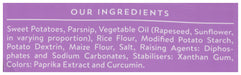 - Individually quick-frozen sweet potato and parsnip, coated in a rice flour batter.