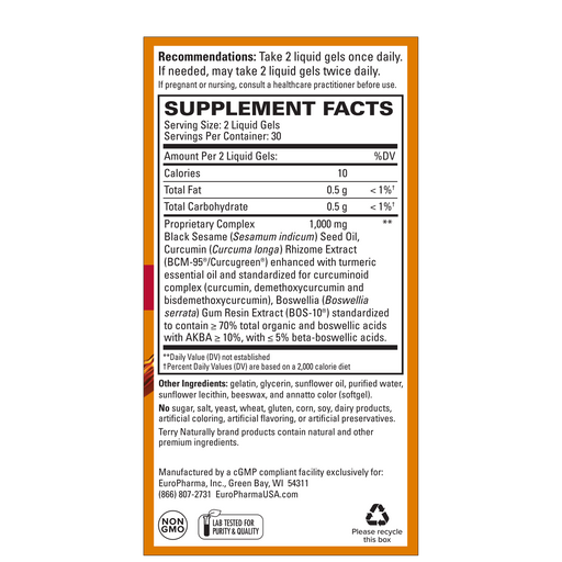 Terry Naturally CuraMed Acute Pain Relief, 10 liq gel With clinically studied BOS-10 boswellia + black sesame seed oil. BCM-95 curcumin is ...