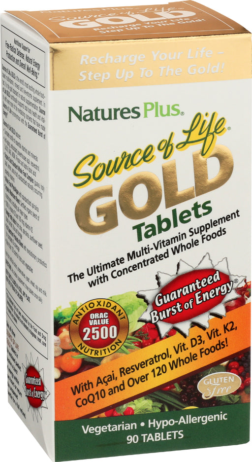 Natures Plus Source of Life Gold 90 Tabs. Nutrients from more than 120 whole foods. Includes vitamin d3, which many people don’t get enough o...