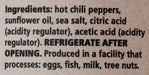 - Hot chili peppers, sunflower oil, salt, citric acid ( acidity regulator ), acetic acid ( acidity regulator ).