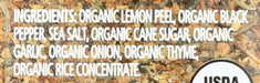 - One 3.17 oz bottle of Organic Lemon Pepper.