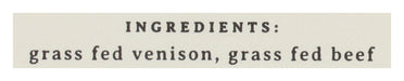 - Made with grass fed, pasture raised, venison and beef patties lifelong access to pasture.