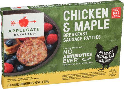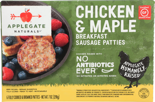 Applegate Naturals Chicken & Maple Breakfast Sausage Patties, 7 oz Spices: Black pepper, cinnamon, ginger, red pepper, sage, fenugreek, ...