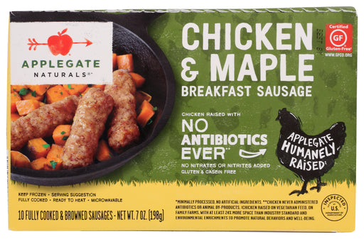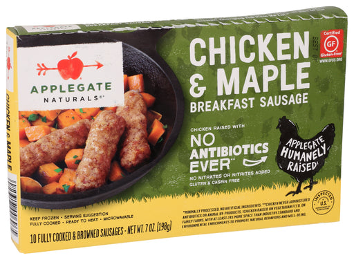 Applegate Nat Chicken & Maple Breakfast Sausage Lnks, 7 oz Applegate humanely raised chicken raised on vegetarian feed, on family farms, ...
