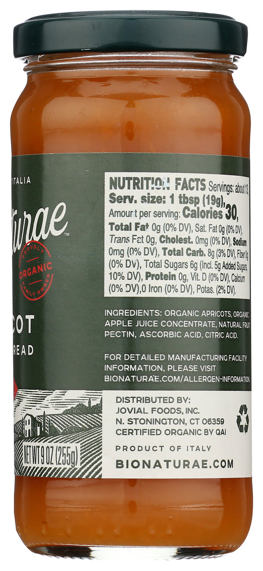 Bionaturae Organic Apricot Fruit Spread, 9 Oz. Jar Bionaturae Organic Apricot Fruit Spread is made with hand-harvested organic fruit from small ...