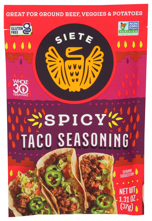 Siete Seasoning Taco Spicy, 1.31 Oz Siete Seasoning Taco Spicy packet that brings the flavorand the heat! Made with a savory blend of chili, to...