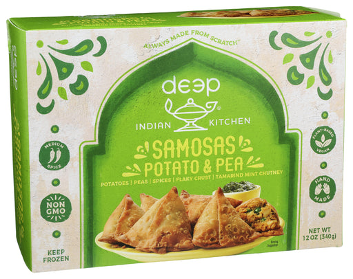 Deep Indian Kitchen Samosas, Potato & Pea With Mint Chutney, 12 oz Deep Indian Kitchen Samosas, Potato & Pea With Mint Chutney is a pota...