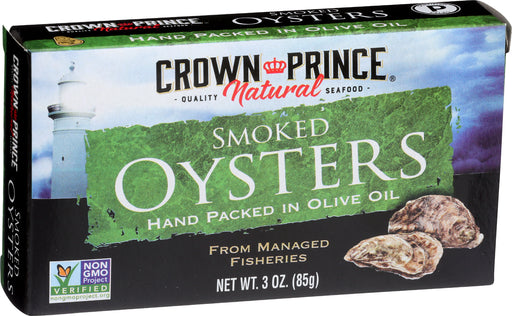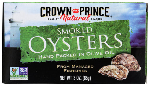 Crown Prince Oysters, Naturally Smoked, 3 Oz. Crown Prince Oysters, Naturally Smoked have been hand packed in pure olive oil at the peak of fres...