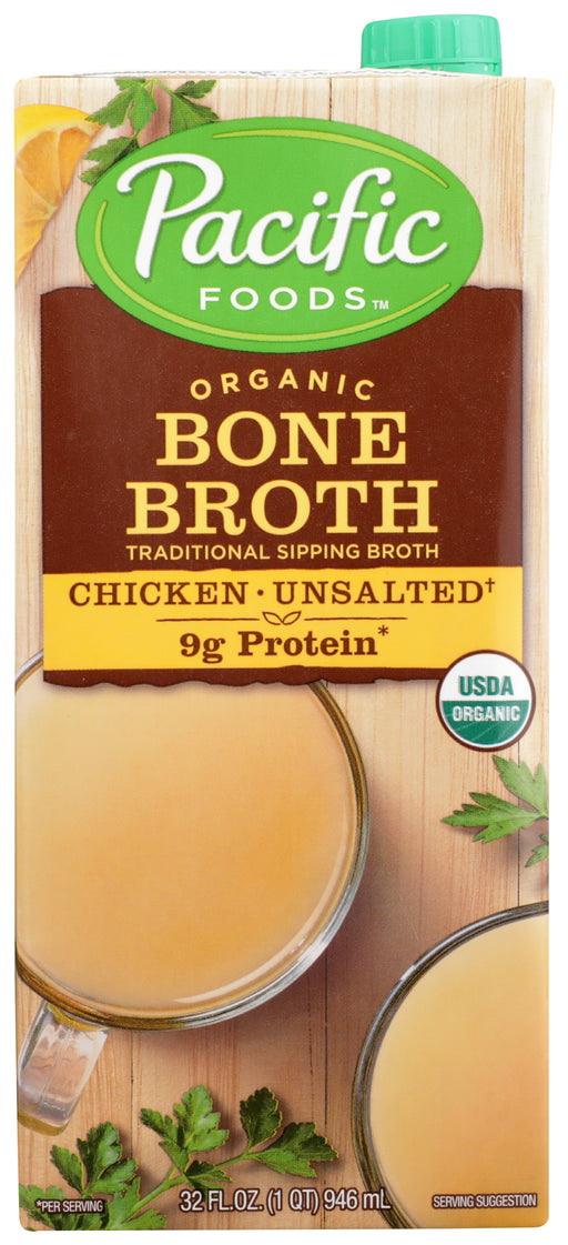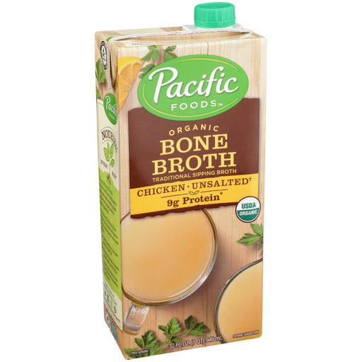 Pacific Foods Bone Broth, Chicken, 32 Fl. Oz. Pacific Foods Bone Broth, Chicken is an organic, gluten-free broth with everyday uses. With 9 g of...