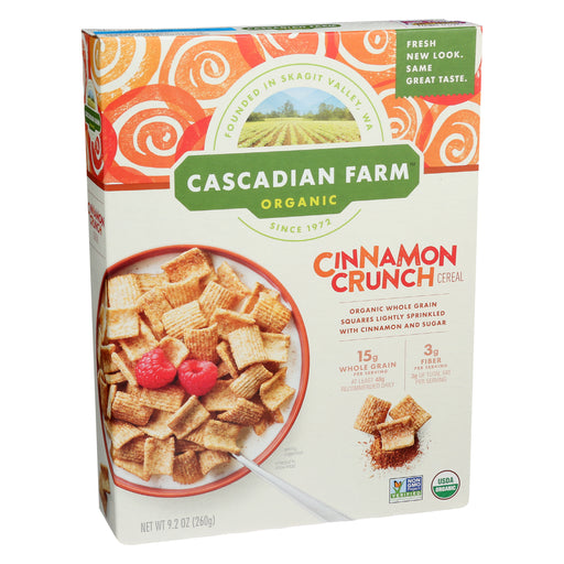 Cascadian Farm Cinnamon Crunch, 9.2 oz Cascadian Farm Organic Cinnamon Crunch cereal features yummy organic whole grain squares lightly sprinkle...