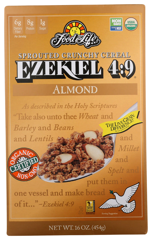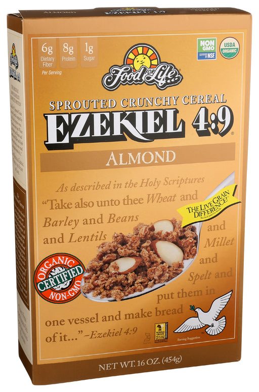 Food For Life Org Ezekiel 4:9 Sprouted Flourless Whole Grain Crunchy Cereal, Almond, 16 oz All the taste and nutrition of our original cereal wi...