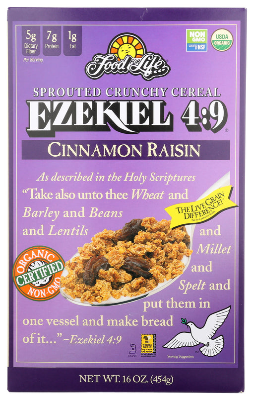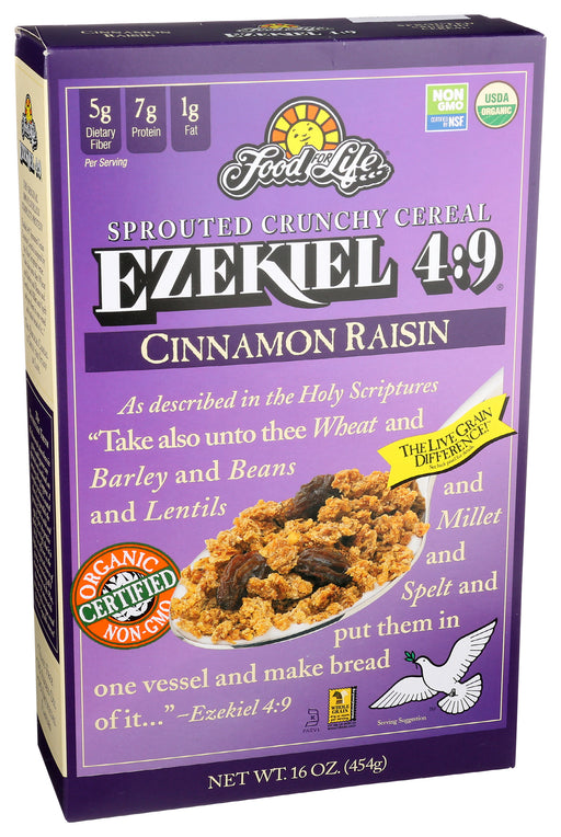 Food For Life Org Ezekiel 4:9 Sprouted Flourless Whole Grain Crunchy Cereal Cinnamon Raisin 16 oz Food For Life Org Ezekiel 4:9 Sprouted Flourle...