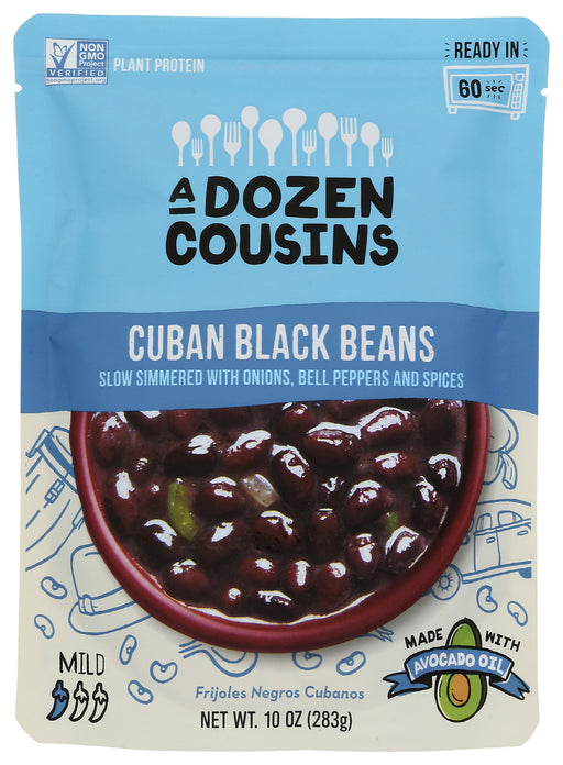 A Dozen Cousins Cuban Black Beans, 10 oz A Dozen Cousins Cuban Black Beans is classic recipe is cooked in a sofrito of onion, garlic, bell peppe...