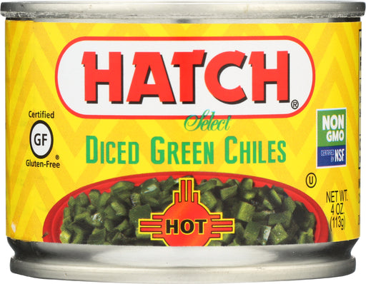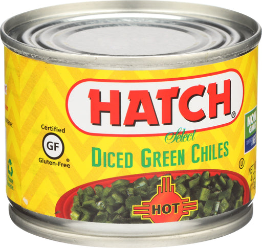 Hatch Select Green Chile Peppers, Hot Diced, 4 Oz. Hatch Select Green Chile Peppers, Hot Diced is a convenient product in a sealed can that will...
