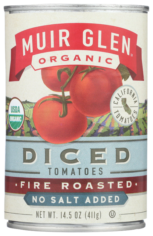 Muir Glen Tomatoes, Fire Roasted, Diced, No Salt Added, 14.5 Oz. Muir Glen No Salt Added Diced Roasted Tomatoes provide a bold burst of flavor t...