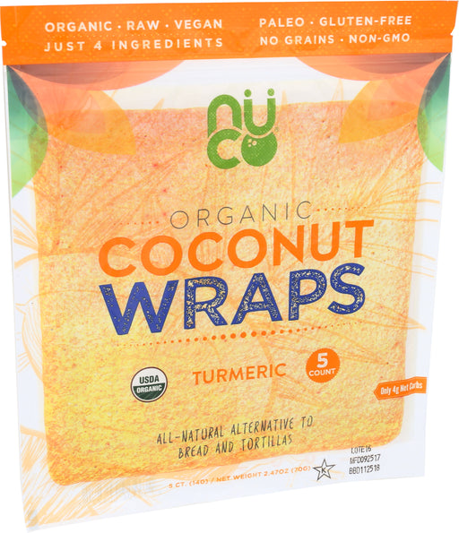 Nuco Organic Turmeric Coconut Wraps, 5 Count Nuco Organic Turmeric Coconut Wraps are a great way to enjoy burritos and rolls without consuming b...