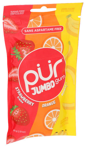 Pur Jumbo Gum, Strawberry, Orange, Banana, 20 ct 100% xylitol. Strawberry orange banana. Sugar-free chewing gum with sweetener. Swiss m...