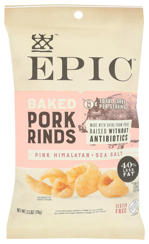 Epic Pork Rinds, Himalayan Salt 2.5 Oz Epic's line of baked Pork Rinds was developed to highlight the rich flavor of Pork skins through simple s...