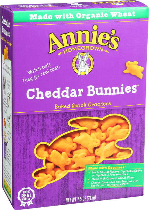 Annie's Homegrown Cheddar Bunnies Crackers, 7.5 Oz. Annie's homegrown cheddar bunnies crackers make it possible to snack without guilt. Made wit...
