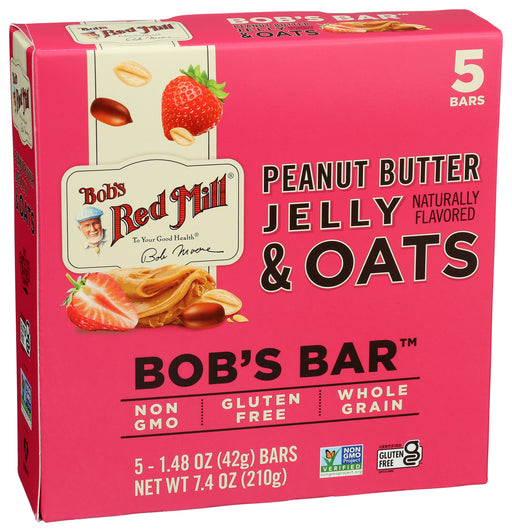 Bob's Red Mill Bar Peanut Butter Jelly & Oats, 1.76 oz Bob's Red Mill Bar Peanut Butter Jelly & Oats is a made with whole grain oats, pe...