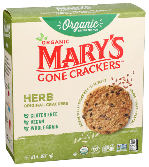 Mary's Gone Crackers Original Herb, 4 oz Mary's Gone Crackers Original Herb is a seed-and-grain crunch for a cracker that feels bright, savory a...