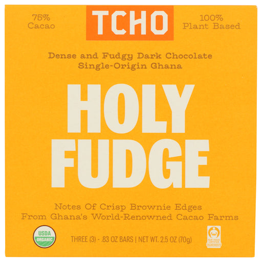 TCHO Holy Fudge Dark Chocolate Bar, FT Org, 2.5 oz TCHO Holy Fudge Dark Chocolate Bar is a dense and fudgy cacao dark chocolate from Ghana's wor...