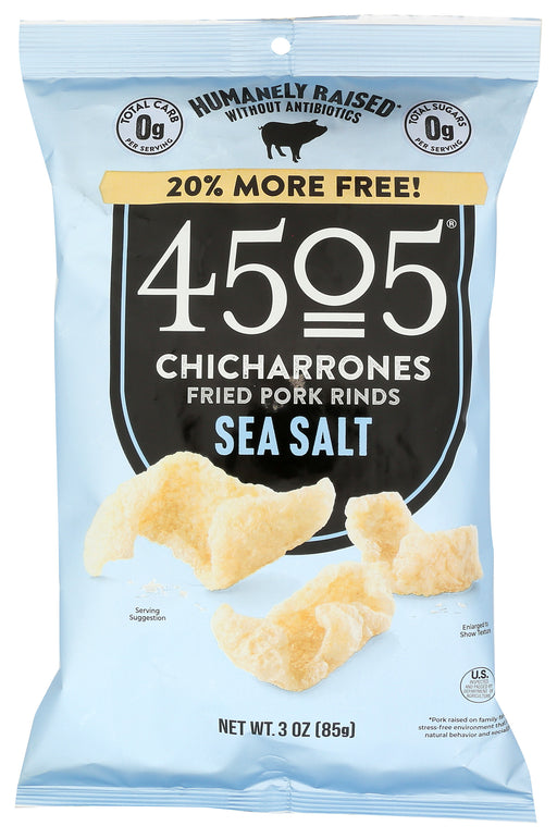 4505 Chicharrones Fried Pork Rinds Sea Salt, 3 Ounce 0g total carb per serving. 0g total sugars per serving. 20% More free. It doesn't ...