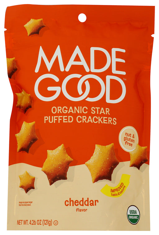 Madegood Cheddar Star Puffed Crackers, 4.26 Oz Madegood Cheddar Star Puffed Crackers are Made in a dedicated peanut and tree nut free facility c...