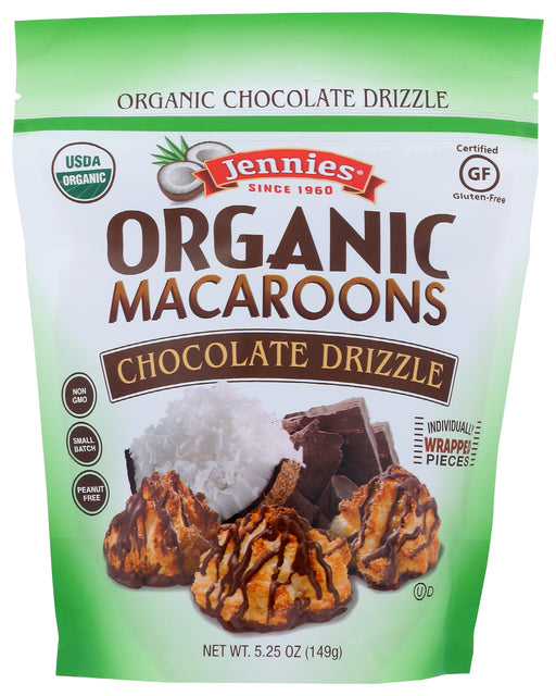Jennie's Organic Macaroons Chocolate Drizzled 5.25 Oz Individually wrapped pieces. Organic rich chocolate and tender coconut create the base ...
