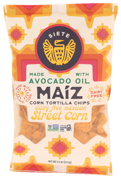 Siete Avocado Oil Corn Tortilla Chips, Street Corn, 7.5 Ounce Siete Avocado Oil Corn Tortilla Chips, Street Corn is a made from grilled corn, co...