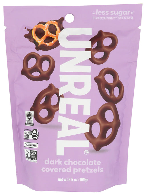 Unreal Dark Chocolate Covered Pretzels, 3.5 Ounce Unreal Dark Chocolate Covered Pretzels are made with simple ingredients and less sugar. Our gr...