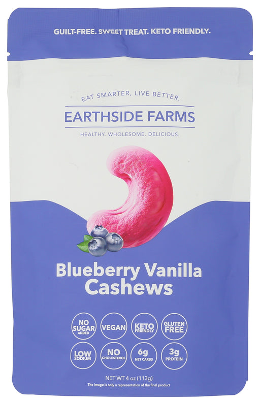 Earthside Farms Blueberry Vanilla Cashews, 4 oz Earthside Farms Blueberry Vanilla Cashews is made to sweet tooth all while containing no added s...
