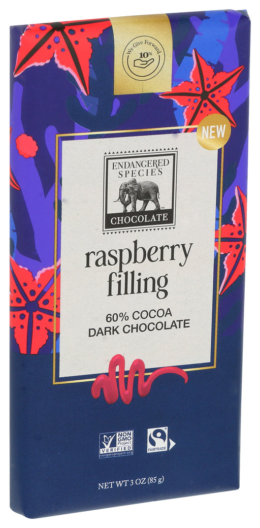 Endangered Species Chocolate Raspberry, 3 Ounce Endangered Species Chocolate Raspberry is a contains soy. Produced on equipment that also proces...