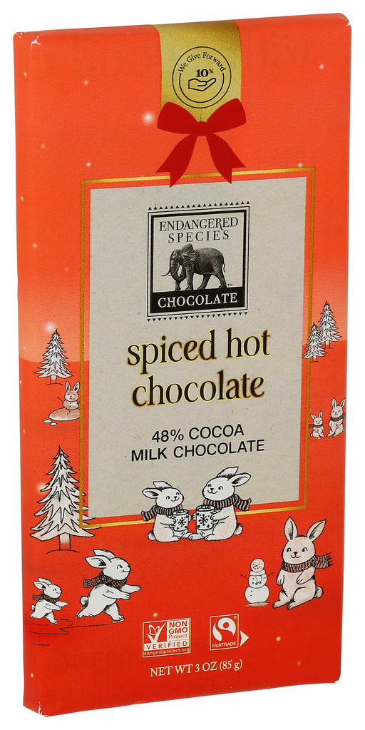 Endangered Species Hot Chocolate + 48% Dark Chocolate, 3 oz 48% cocoa milk chocolate. The good stuff paired with a good cause. Fair trade...