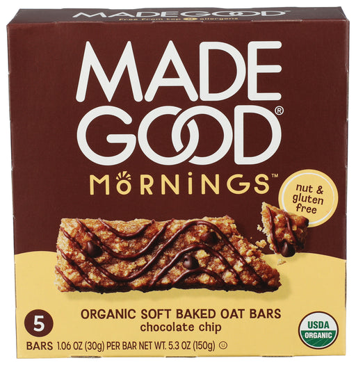 Made Good Breakfast Bars, 5.3 Ounce Made Good Breakfast Bars mornings chocolate chip soft baked oat bars! Bursting with rich, decadent chocolate...