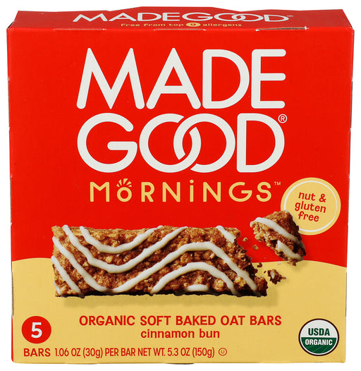Made Good Breakfast Bars, 5.3 Ounce Made Good Breakfast Bars are cinnamon bun soft baked oat bars. Bursting with the warm, comforting flavor of...