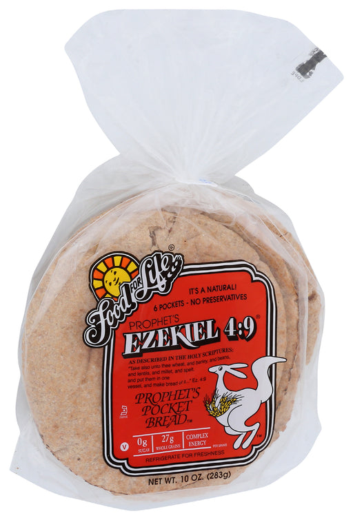 Food For Life Ezekiel 4:9 Whole Grain Pocket Bread 6 Count 0g sugar, 27g whole grains complex energy per serving. It's a natural. High fi...