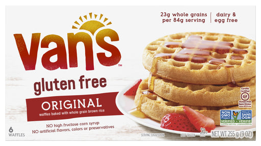 Van's Frozen Waffles, Original Wheat Free, 6 Count Van's Original Wheat Free, gluten free frozen waffles are a completely non-GMO breakfast food...
