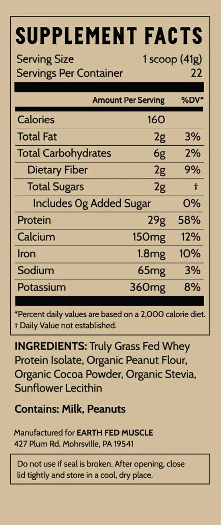 Earth Fed Muscle Power Couple PB Cup Whey Protein GF, 22 serv/32 oz Consume about 1g protein per lb bodyweight daily. Mix a scoop with about ...